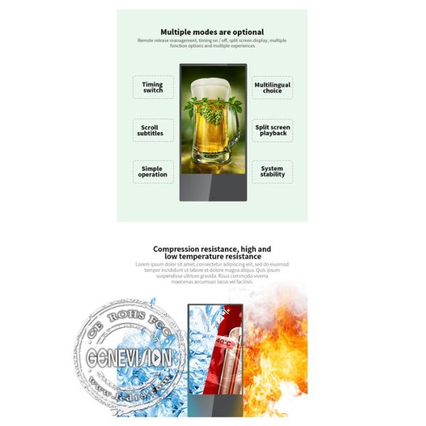 10. Wall mount, roof hanging and floor standing (fixed on ground) all available outdoor LCD installation.