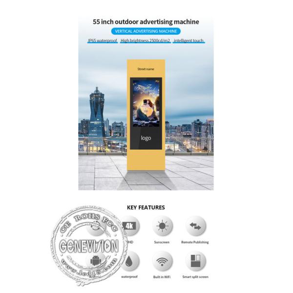 55inch portrait IP65 2000nite Brightness fan cooling android PC digital signage and displays outdoor kiosk