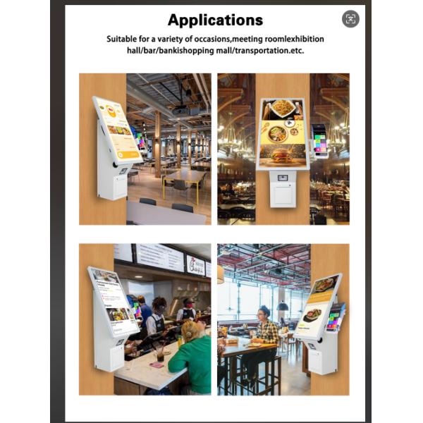 21.5 15.6 Inch White Automatic Cashless Restaurant Self Service Kiosk Wall Mount Images |