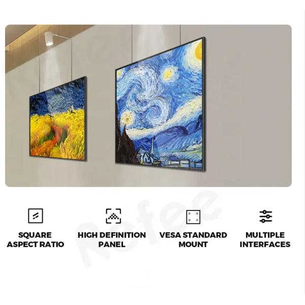 The square LCD wall mount monitor display is a true 1:1 LCD screen with a resolution of up to 1920×1920. It supports 7*24 hours and 365 days of continuous booting with very high performance of reliability and stability. It can be used for splicing or Can be used as a single display.Square LCD wall mount monitor displays are often used in commercial new retail, chain restaurants, cosmetics stores, high-end luxury stores, boutiques, exhibitions, and other fields. Square LCD display is gradually replacing traditional billboards, light boxes, and other display products due to its special dimensions and the advantages of being able to play a variety of materials (such as video, pictures, audio, text, etc.)